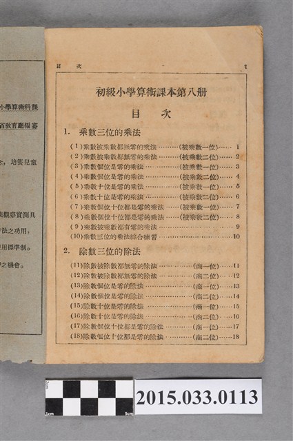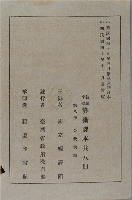 2015.033.0113 國立編譯館主編《初級小學算術課本第8冊》