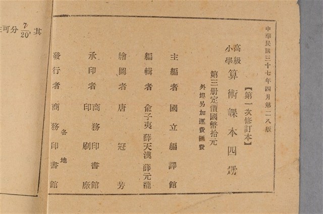 2015.033.0118 國立編譯館主編《高級小學算術課本第3冊》