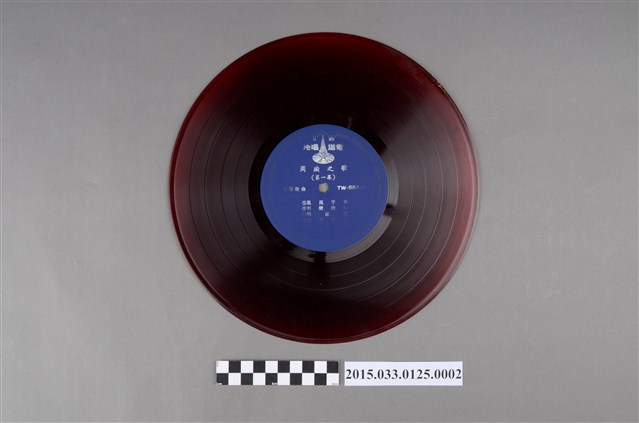 唱片呈現圓盤狀,顏色為暗紅色,上面寫著周旋之歌(第一集),月圓花好、小小洞房、天長地久(前段)、天長地久(後段)、鳳凰于飛、不變的心、柳聞鶯、愛神的箭。(陳亭靜撰文,陳怡宏校正)
