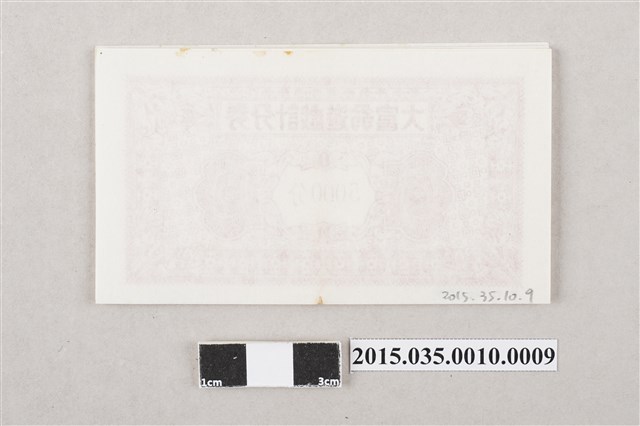 2. 正牌銀行遊戲盤「大富翁」,內容包括外包裝紙盒(含底與蓋)、遊戲規則說明書(1張)、遊戲盤(1張)、轉盤(黃色、1個)、命運牌、機會牌、計分券、抵押券、動產與不動產塑膠模型等配件。紙盒封面印有一左手拿算盤、右手豎起大拇指,身旁有個福字、被眾多金元寶所圍繞的老翁,除遊戲名稱「正牌 銀行遊戲盤 大富翁」外,另有「謹防假冒,註冊商標:13861,臺北信箱:1131、TEL: 9400067」等文字。