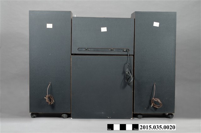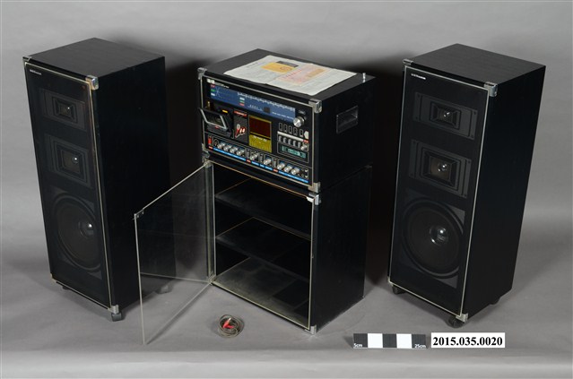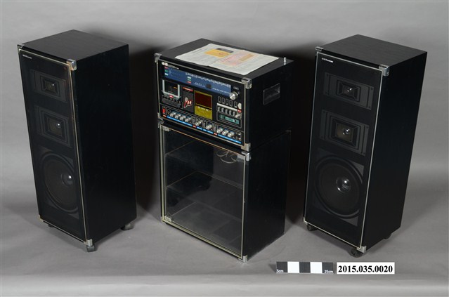 2. 本件為匣式錄音帶伴唱機,為民國73年購買臺製品牌機種。匣式錄音系統為盤式錄音系統衍生而來,流行於1960-1970年代間,匣帶盛行原因主要有四:(1) 錄音及播音裝帶方便;(2) 匣式帶之磁帶可容納較多的電波磁化信號,音效較盤式帶佳;(3) 可做多音軌錄音;(4) 匣式帶在錄音磁頭每次與磁頭接觸,就會先錄上一個提示信號(cue tone),這種高頻率的提示信號只有機器能辨識,因此在放音時,放音磁頭會自動搜尋此訊號,找到之後就字度暫停成為待命狀態,每當開始播音時絕對是在指定的片段起頭點。此種特殊精準的定位功能與優點,使得匣式錄音系統廣受廣播播音的歡迎,並且在卡拉OK發展初期,匣式帶也因為可以逐曲搜尋,因此一度暢銷。歐美之匣式錄音帶於1970年代末期逐漸被卡式錄音帶所取代,直到1980年代才正式消失;臺灣地區則較晚消失,於1980年代仍十分盛行,至1990年CD問世後才逐漸被取代,主要與匣式帶選曲伴唱功能十分便利有關。