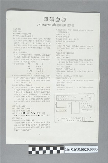 2015.035.0020.0005 海頓牌JY-7517百分伴唱機說明書