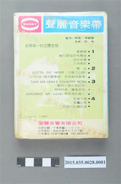 聲麗音響有限公司發行編號SP-029《水晶立體吉他演奏集第二集》單頭匣式錄音帶外盒