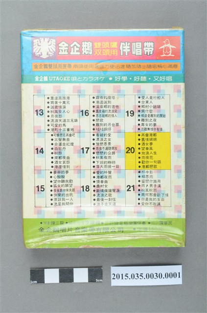 2015.035.0030.0001 金企鵝唱片音樂帶有限公司發行《金企鵝伴唱帶20》雙頭匣式錄音帶外盒
