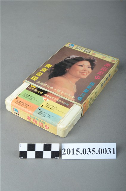 一、海麗實業股份有限公司發行《妻戀道中東京音頭》單頭匣式錄音帶。配件包括匣式錄音帶1卷、外包裝紙盒1個。外包裝封面為女歌手梅素蘭彩色肖像照。文宣標榜梅素蘭主唱,周連昌吉他、電子琴伴奏,歌曲版,特價150元。出版登記:局版台音字第0197號。錄音/周連來,企畫製作/吳勝彥,編曲指揮/周連昌。
