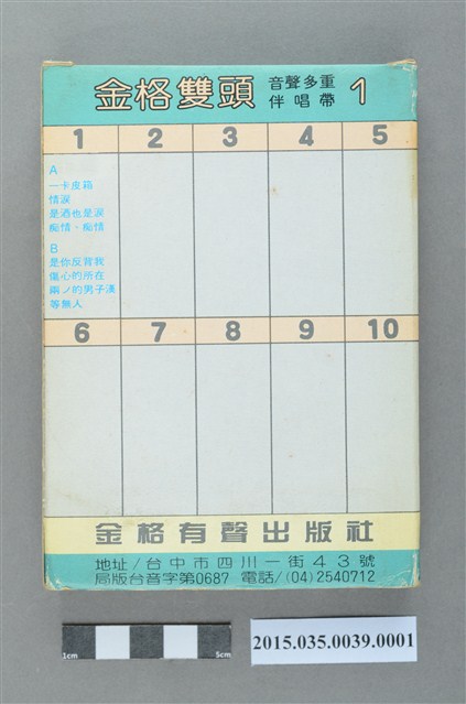 金格有聲出版社發行《金格雙頭多重音聲伴唱帶1》雙頭匣式錄音帶外盒
