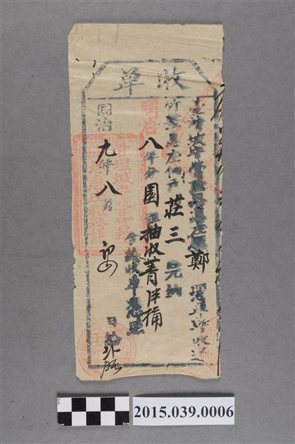 2015.039.0006 同治9年城守營竹塹隆恩息庄交付佃人莊三收單