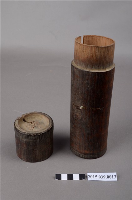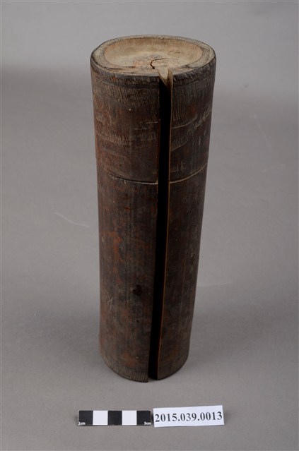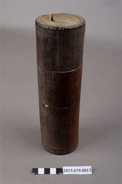 據捐贈人表示,此物件為新竹客雅庄莊家用來置放契書的竹筒。以竹筒密封存放契約,是清代民間常用的契約保存方式之一。