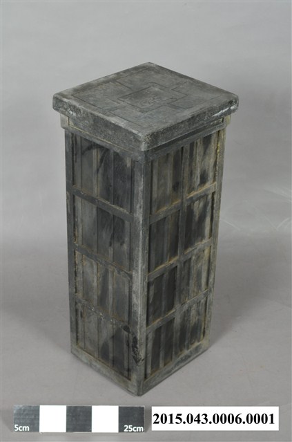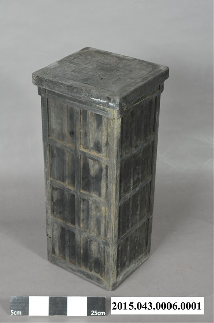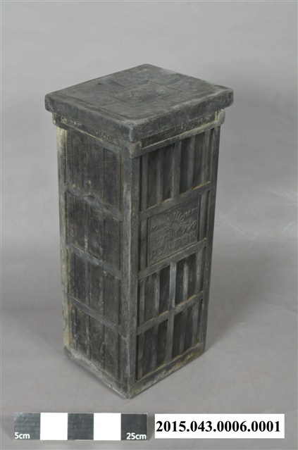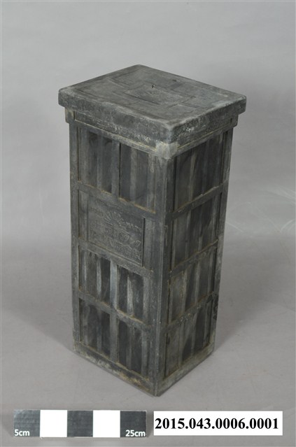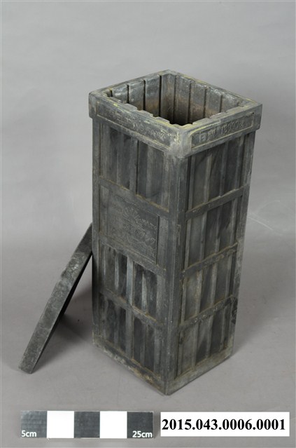 2. 本件為日本青葉商會製朝日牌硬橡膠黑白底片沖片筒,四方形長柱狀,長25.5公分,寬23.5公分,高59公分,包括頂蓋、筒身2部分。