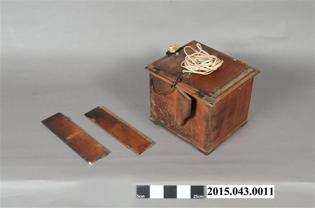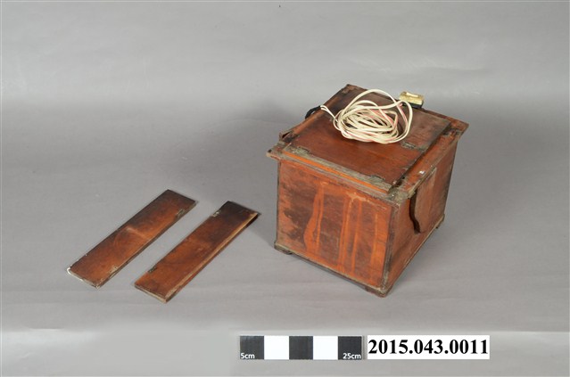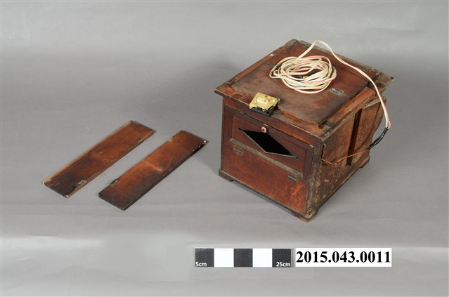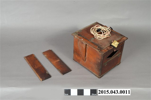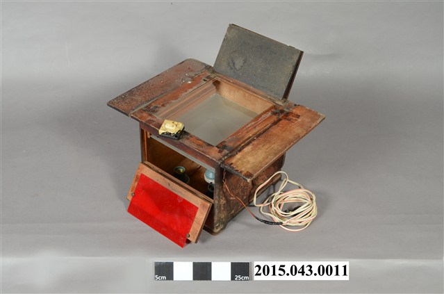 1. 本件根據捐贈者涂寬裕先生描述,採集自臺南市康樂街南北照相館,為照片印相箱(或稱印樣箱)。該店老東家於日治時期在日本攝影師開設之寫真館擔任學徒,二戰後居住於臺灣的日僑被迫返回日本,日籍攝影師父將寫真館帶不走的攝影暗房器材留在臺灣,戰後由臺灣徒弟繼續接手照相館之營運,因此該店中保留部分當時所留下的暗房器材。此物推測可能為日本時代日籍攝影師父所留之物,並於戰後持續使用,電器部分可能後來有重新修繕與改良。