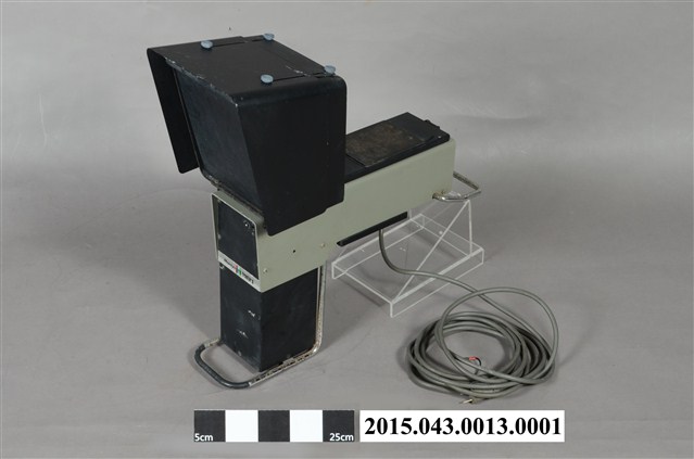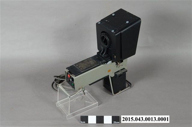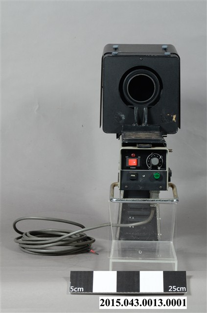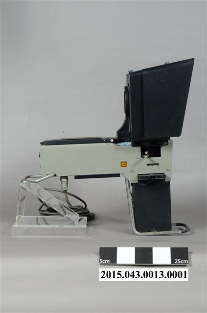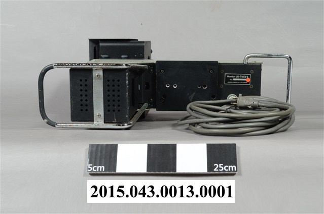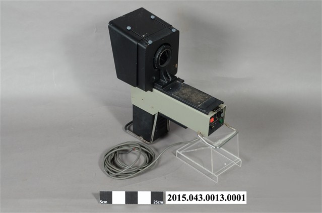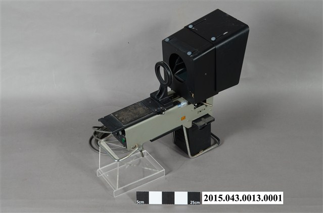 2. 虛擬背景投影機之使用方式為投影機主機架設在重型攝影腳架上,將120或135相機架在大遮罩的圓型大孔處。其運作原理主要是將背景幻燈片插入底部的投影機片匣內,電源開啟時,投影機將影像打到上方的散光鏡,透過折射將背景影像投入相機鏡頭內,由於投影機的影像並未直接投影到反光背景布幕上,因此拍照者是看不到背景存在,而攝影師則是可以同時在相機觀景器內看到人物主角與背景,當按下快門時拍攝的主角和背景可同時捕捉入鏡,因此無需進行其他影像後製程序。