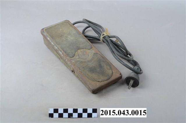 1. 本件為捐贈者涂寬裕先生早年使用的暗房器材之一,為控制放大機曝光時間長短計時器的腳踏開關。