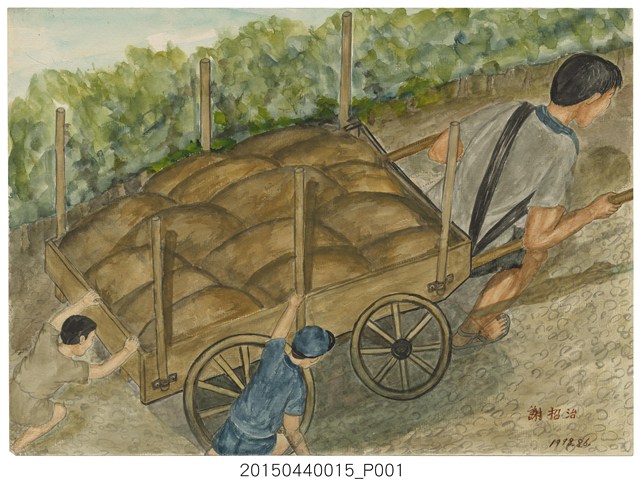 2015.044.0015 謝招治《學生與拖板車》