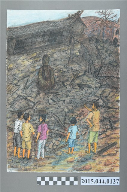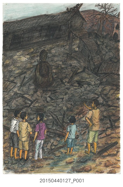 2015.044.0127 謝招治《龍山寺轟炸後現場》