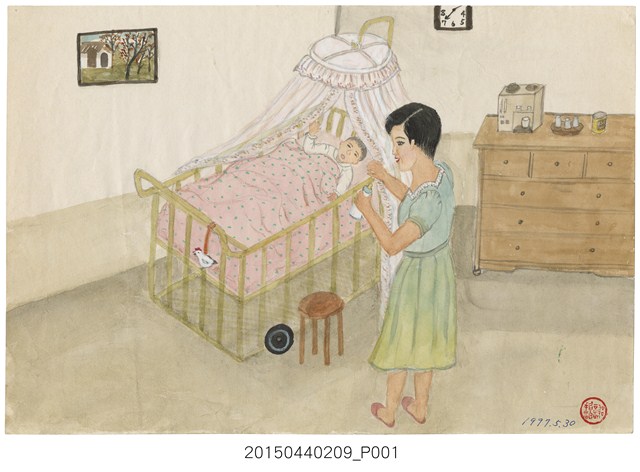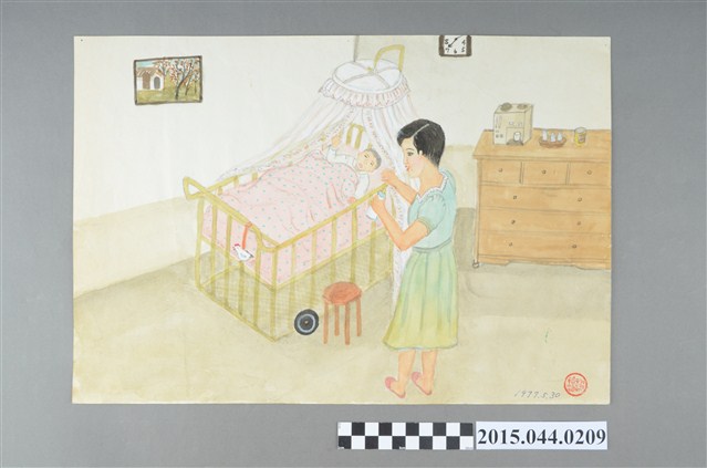 2015.044.0209 謝招治《娃娃睡蚊帳》