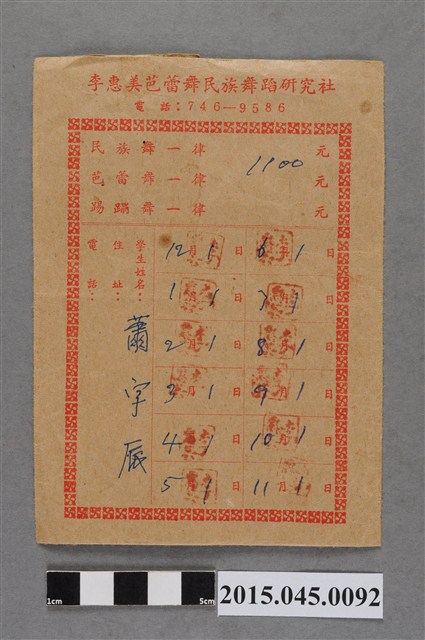 2015.045.0092 李惠美芭蕾舞民族舞蹈研究社蕭宇辰學費袋