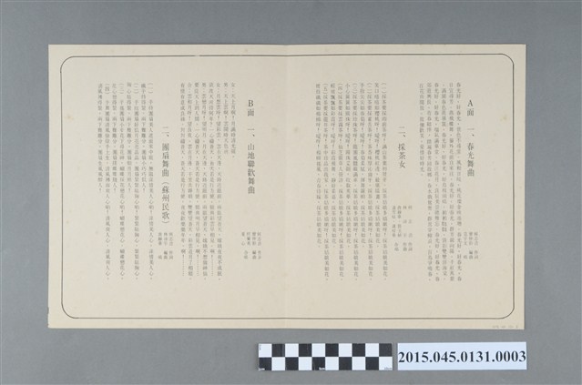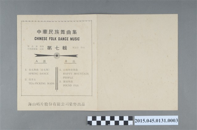 2015.045.0131.0003 海山唱片發行編號「SM-015」《中華民族舞曲集(第七輯)》歌詞