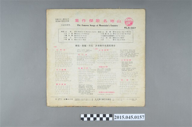 2015.045.0157 太王唱片發行編號「KLA-007」《山地名歌傑作集》封套