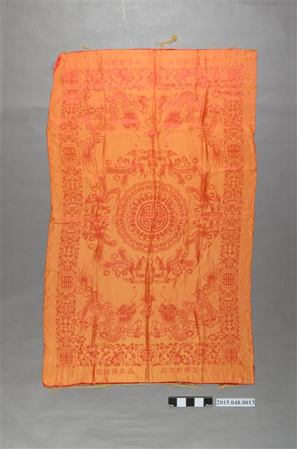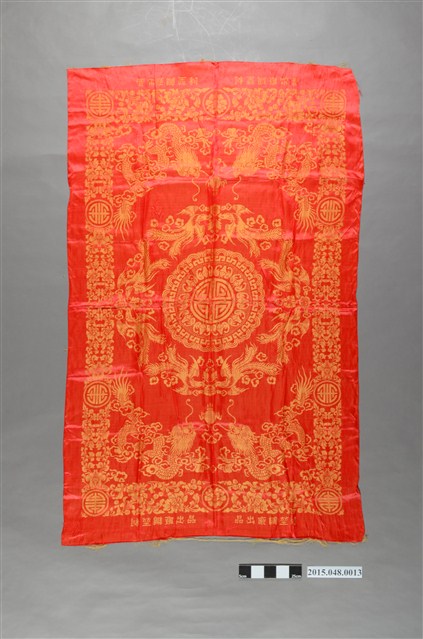 2015.048.0013 紅底金緹花龍鳳福壽紋喜幛