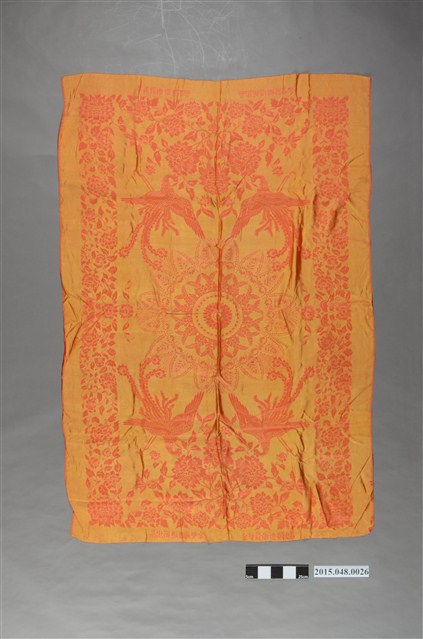 2015.048.0026 紅底金緹花鳳凰牡丹紋喜幛