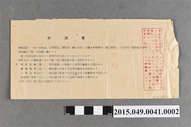 蔡保教千代田生命保險相互會社保險費收據。保費為38.73,紅利分配為8.94,扣除額則為29.79圓。保險金額為1千圓。