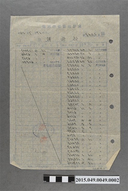 蔡天凰之株式會社日本勸業銀行高雄支店有價證券明細表,內容有戰貯及金額字樣,應該為戰時貯蓄債券,有購買債券7.5圓,15圓(購買約四十次左右)及30圓等。