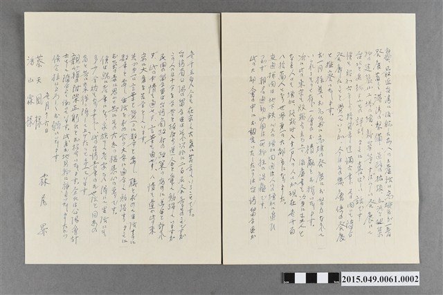 森尾昇寫給潘山霖及蔡天凰信封及信函