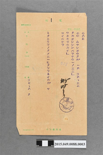 2015.049.0088.0003 蔡天科二兄死亡電報