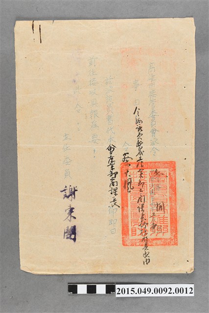 2015.049.0092.0012 高雄州接管委員會給蔡天凰暫代產業部工商課長派令