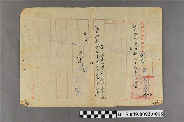 2015.049.0092.0018 臺灣省高雄縣政府給蔡天凰因病辭職訓令