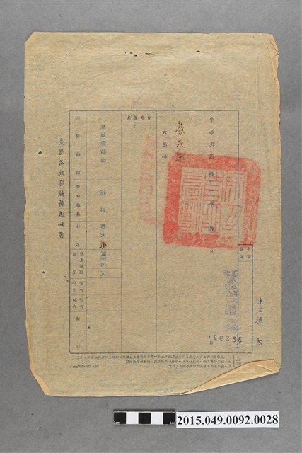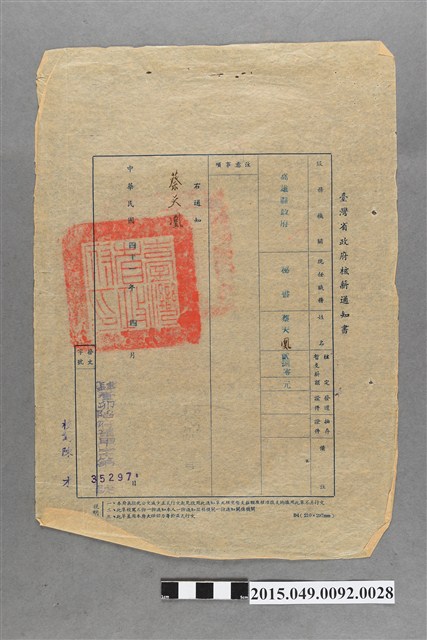 2015.049.0092.0028 蔡天凰臺灣省政府核薪通知書