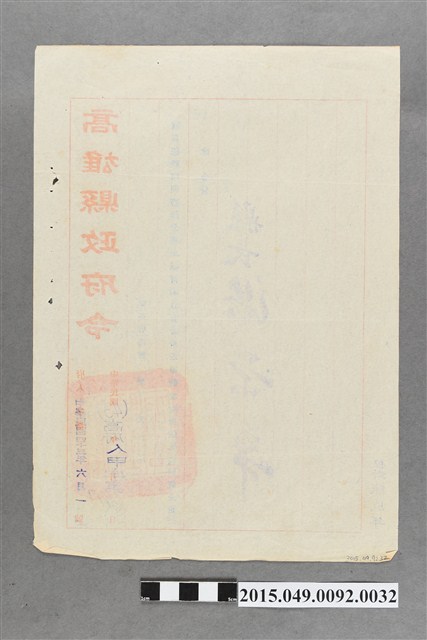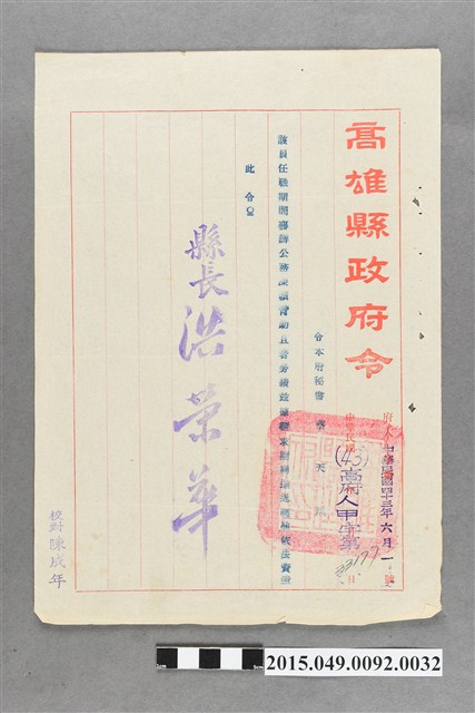 2015.049.0092.0032 高雄縣政府給蔡天凰資遣令