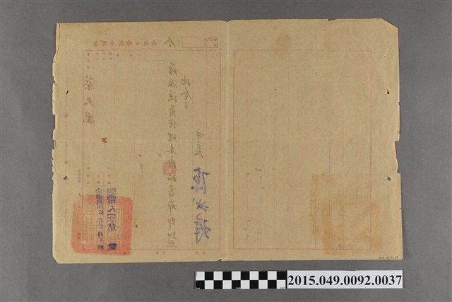 2015.049.0092.0037 臺灣省高雄市政府派蔡天凰代理秘書令