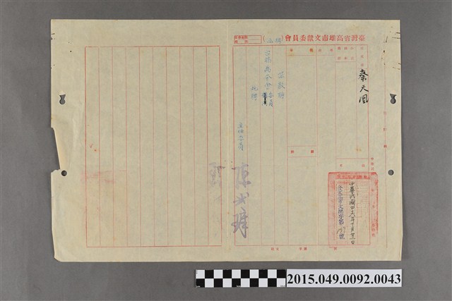2015.049.0092.0043 臺灣省高雄市文獻委員會聘蔡天凰為委員聘函