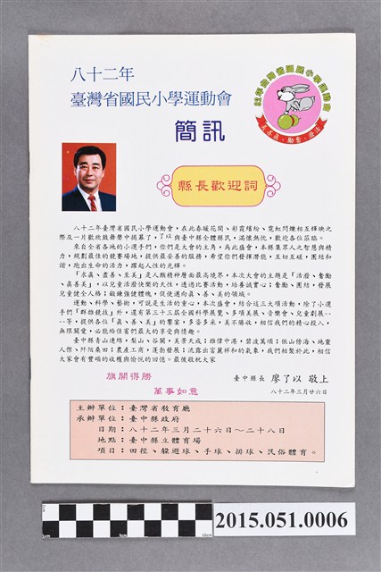 2015.051.0006 臺中縣政府《八十二年臺灣省國民小學運動會簡訊》