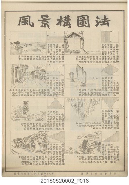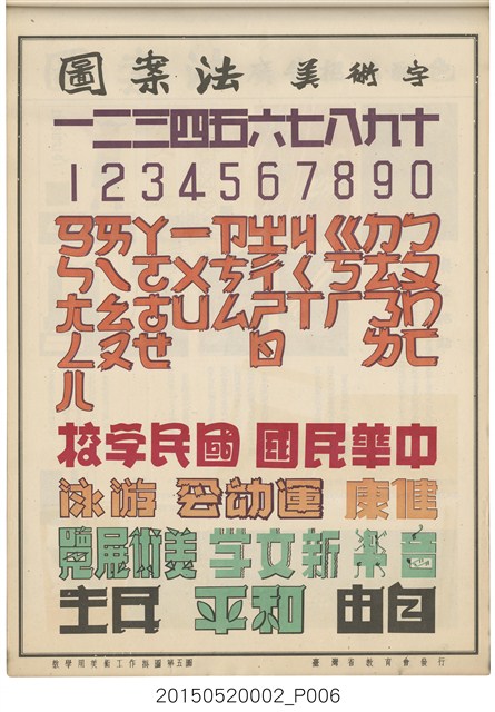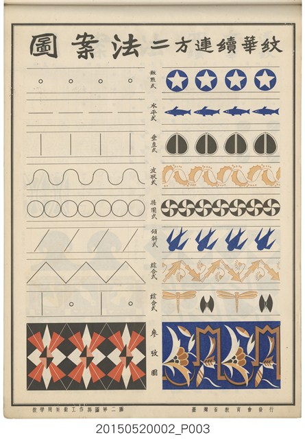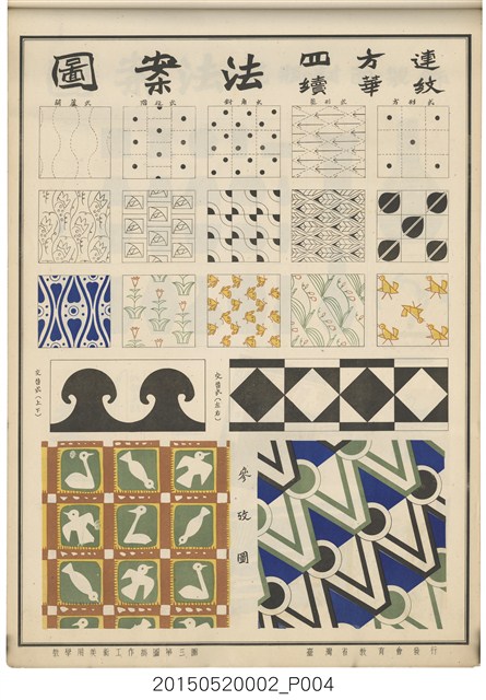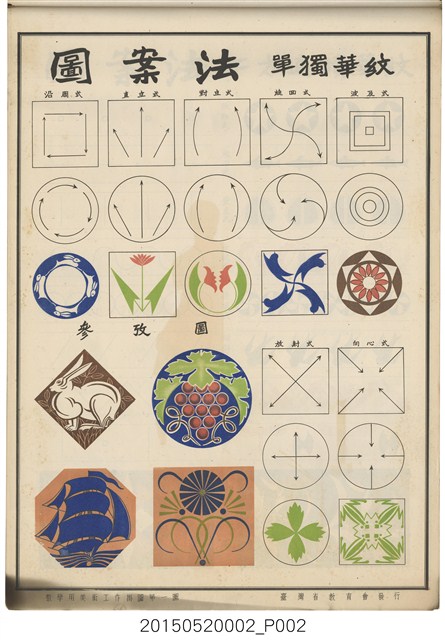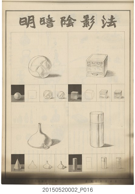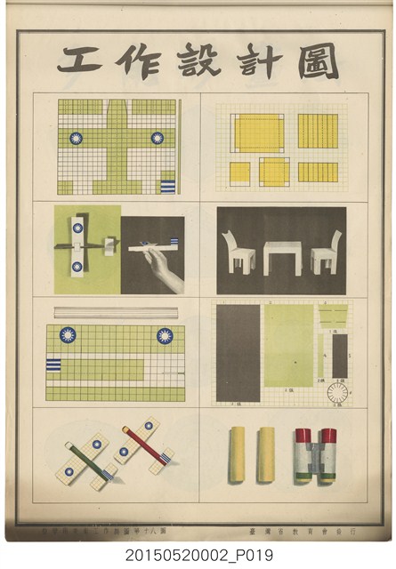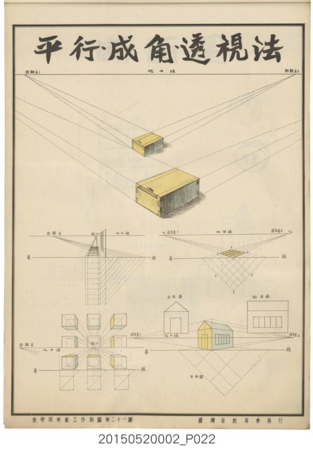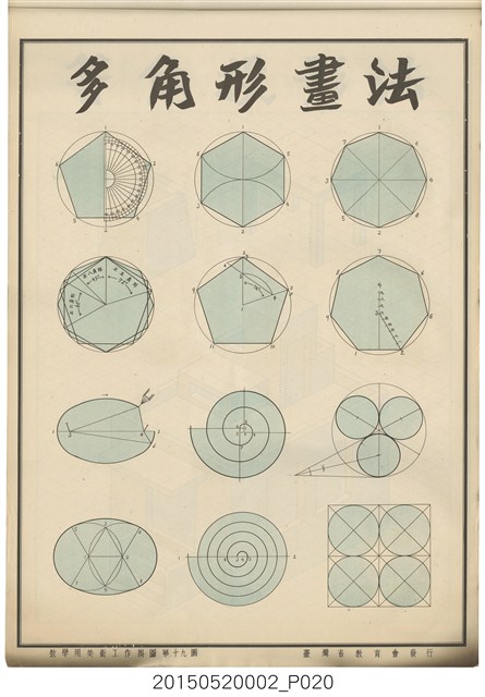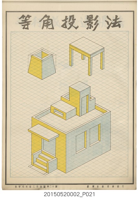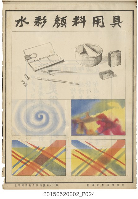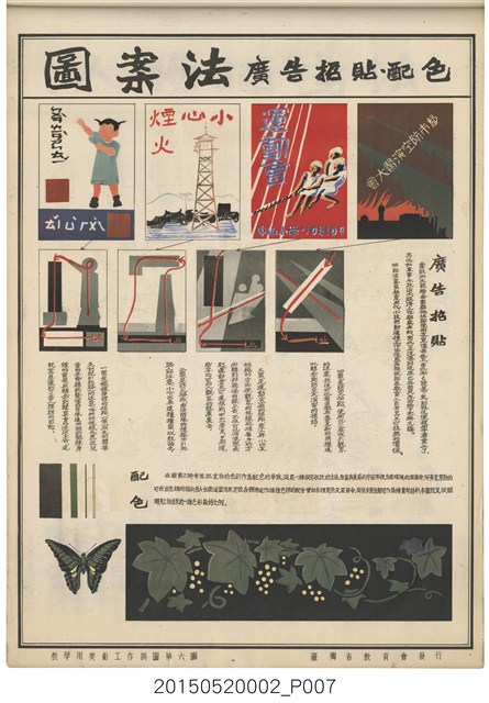 封面註明「臺灣省教育廳審訂」、「教學用美術工作掛圖」、「藍蔭鼎、陳慧坤編繪」、「臺灣省教育會發行」。一組24頁,民國40年10月初版。除封面外共計23張各動物類別繪圖。藍蔭鼎為臺灣知名水彩畫家,隨石川欽一郎習畫有成,作品曾入選帝展。陳慧坤畢業自東京美術學校,長期任教於臺灣省立師範學院(今臺師大)。