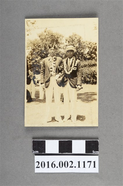 2016.002.1171 張星賢就讀早稻田大學時期代表日本參加第十屆洛杉磯奧運與隊友於檀香山日本選手歡迎會場合照
