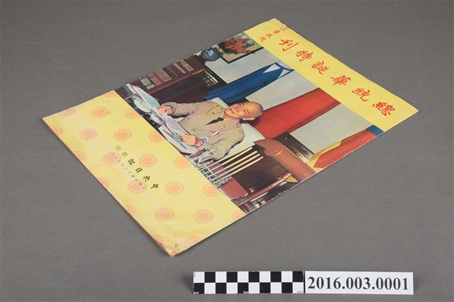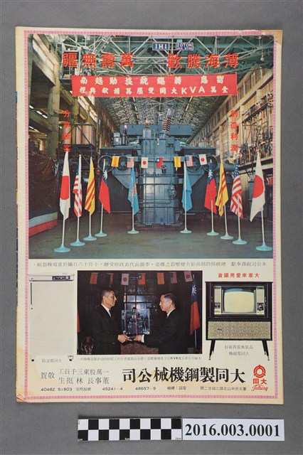 總統在辦公室/建立工業技術基礎 恭祝 總統萬壽/廣告-黑人牙膏 恭祝 總統萬壽無疆/廣告-南港輪胎公司 恭祝 總統萬壽無疆/廣告-臺灣塑膠公司董事長王永慶敬賀 恭祝 總統萬壽無疆/廣告-大同志綱機械公司 薄海騰歡 萬壽無疆。