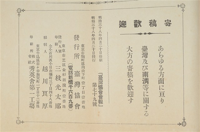 2016.003.0079 《臺灣協會會報》第79號明治38年4月20日