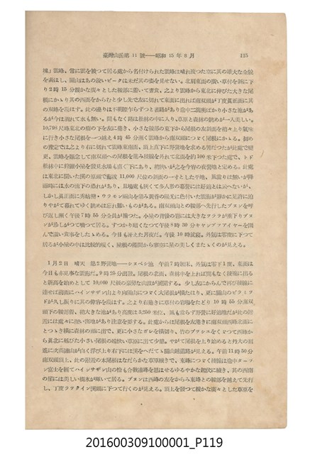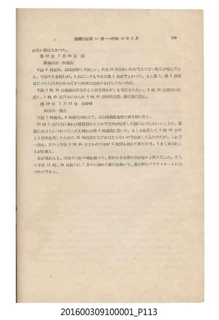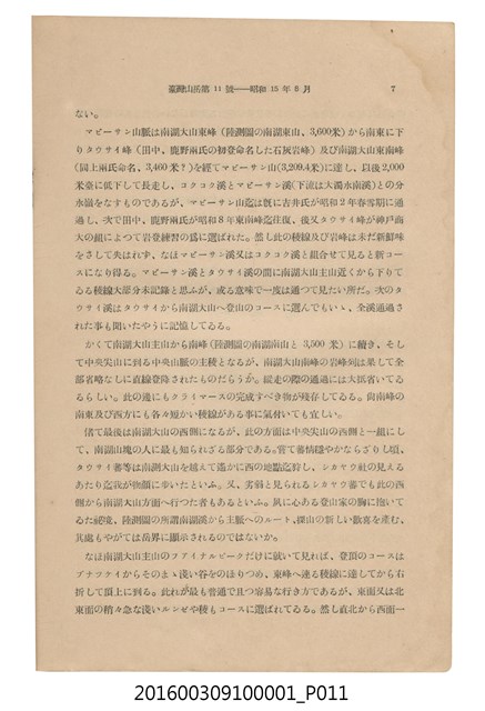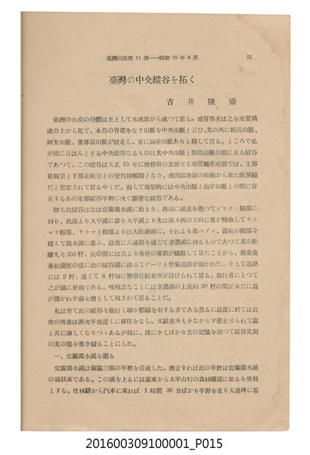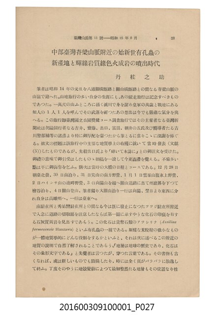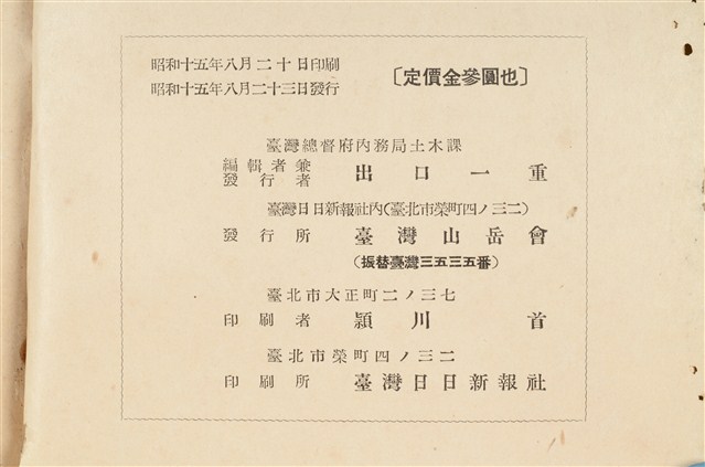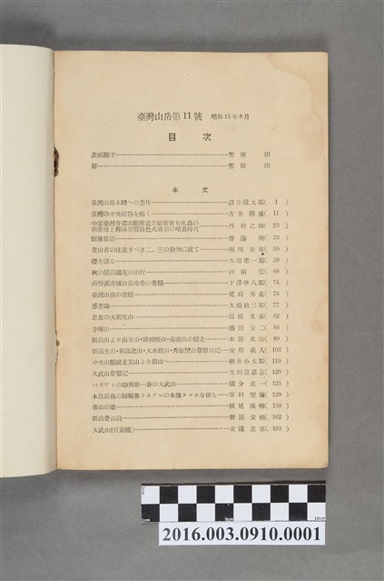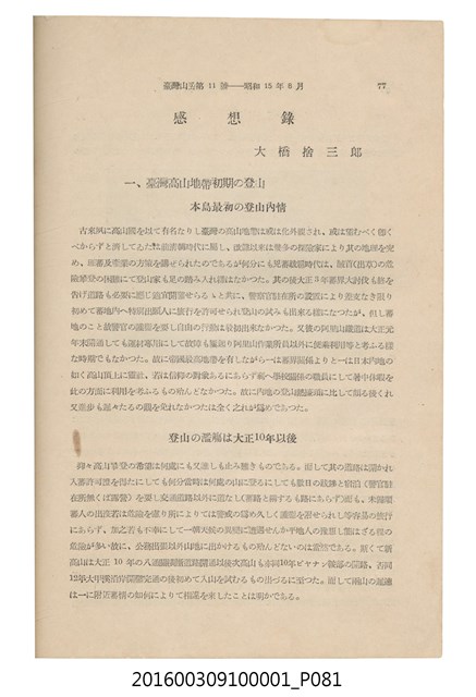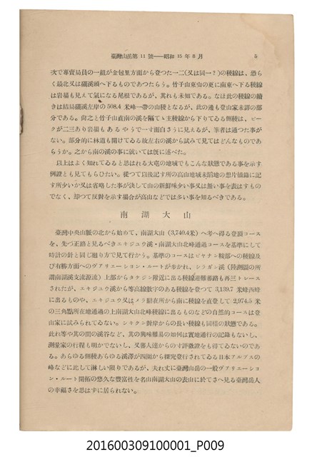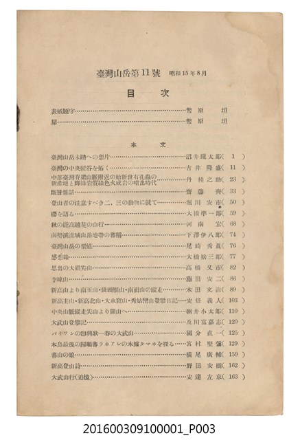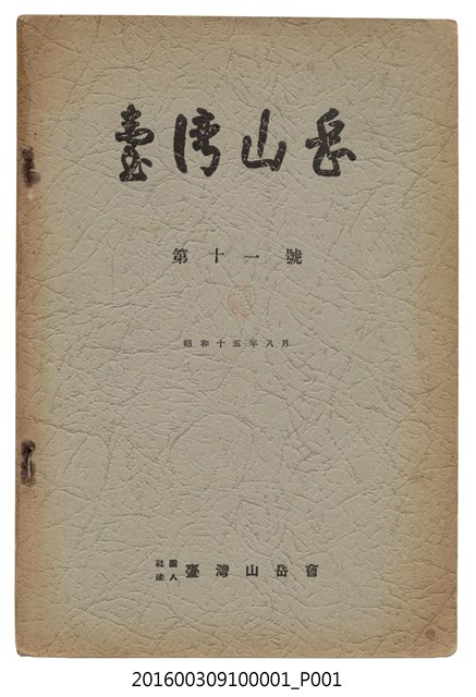 臺灣山岳會出版《臺灣山岳 》第11號昭和15年8月號