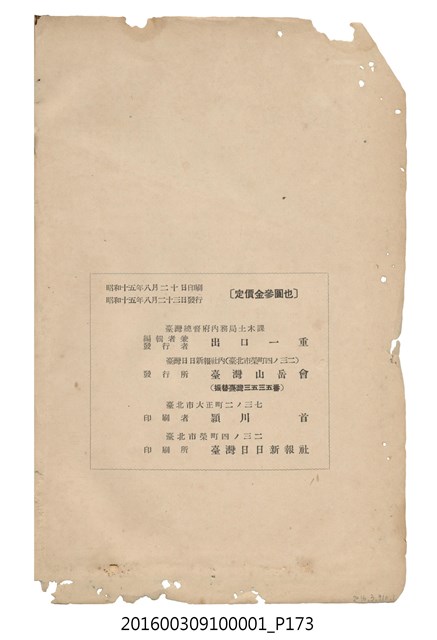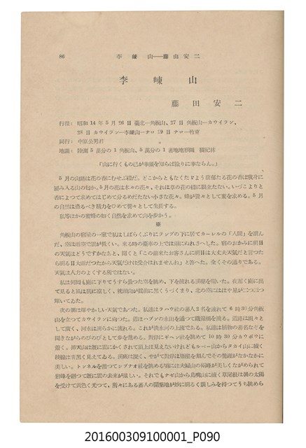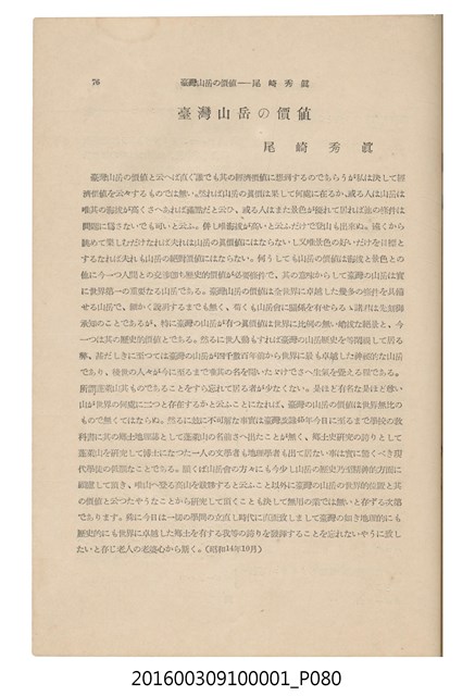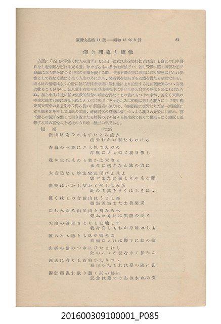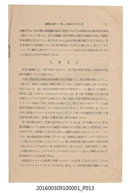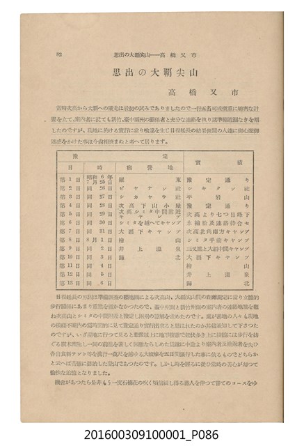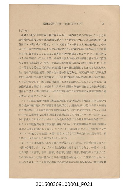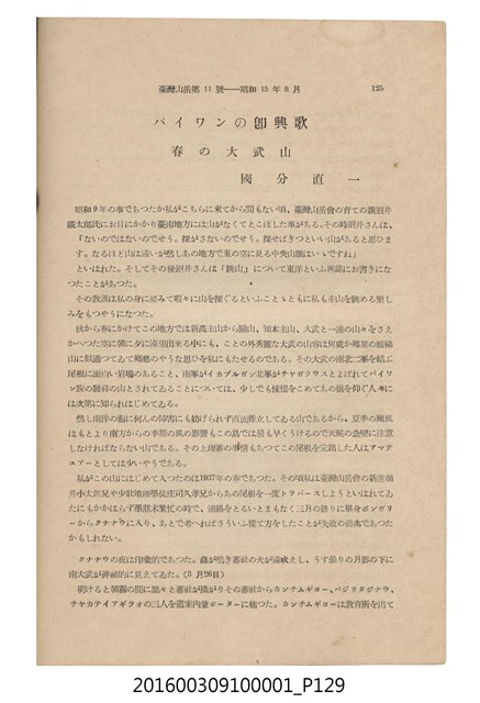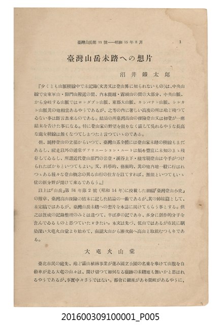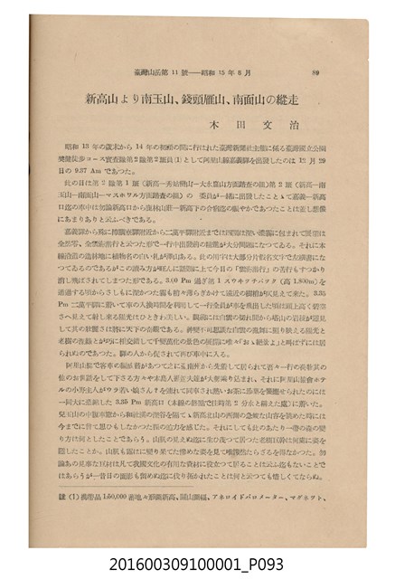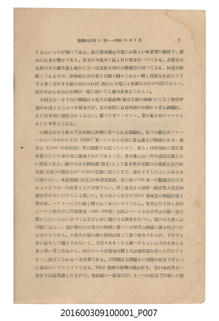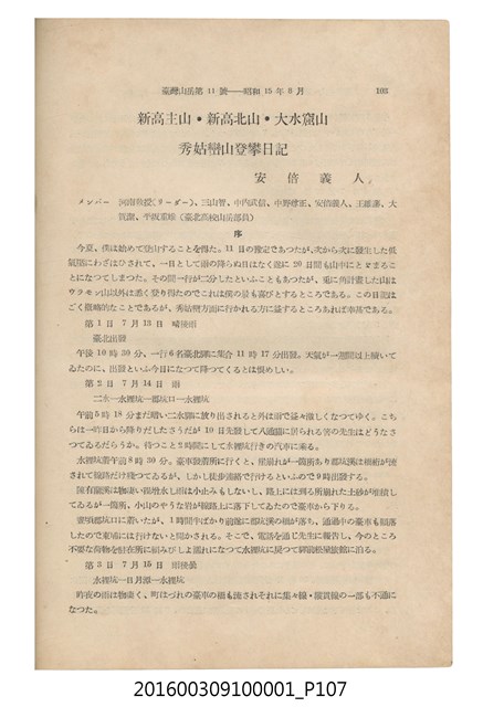 臺灣山岳會出版《臺灣山岳 》第11號昭和15年8月號