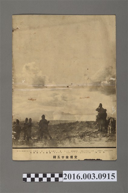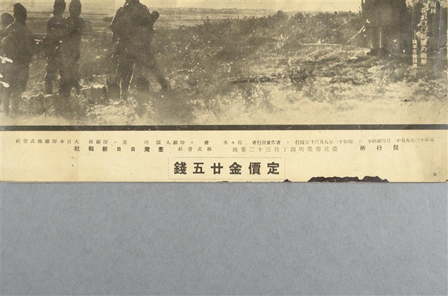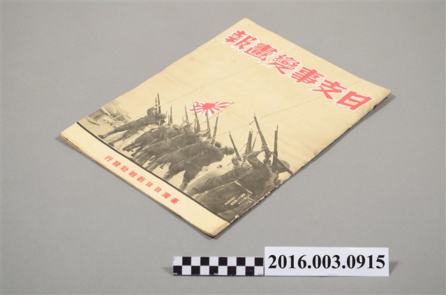 1.此物件為《日支事變畫報》,於昭和12年(1937)9月20日發行,編輯兼發行人為佐佐木齋,發行所為臺灣日日新報社,畫報有別於以文字為主的報紙,整本幾乎為照片的刊載,此次內容刊載了「上海戰線」、「蘆溝橋事變」、「北支戰線」……等照片,詳實的紀錄當時中日戰爭的戰況。