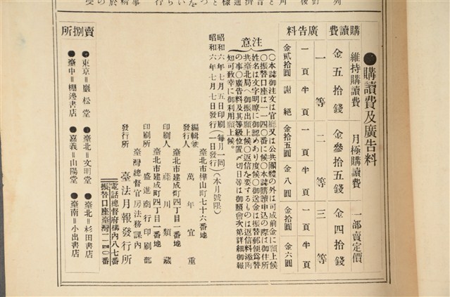 昭和6年4月6日出版的《台法月報》第25卷第7號內容大致包括,支那勞働者渡航事情 井出季和太/祭祀公業の性質と其の分類/ドイツの赤字一億ボンド/行刑諸理論と戒護の新觀念に就て/彙報/辭令/統計/臺法俳壇/等、等、等の話(一) 與太郎/臺法月報質疑用紙/質疑應答/高等法院上告部判例等。《台法月報》於明治38年6月發行,至明治39年11月共發行了17冊,爾後更名為《法院院報》,發行44冊,在明治44年又再度恢復《台法月報》之名,至昭和18年共發行443冊。《台法月報》主要為記錄當時法令的頒布動態外,也有法院