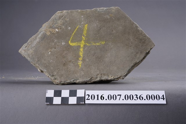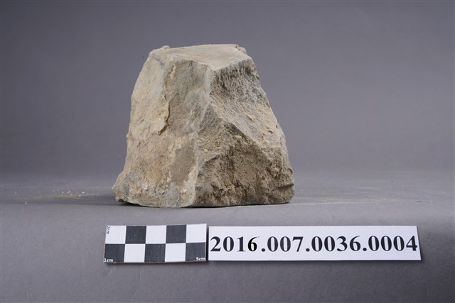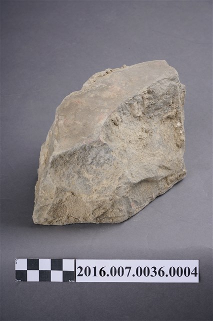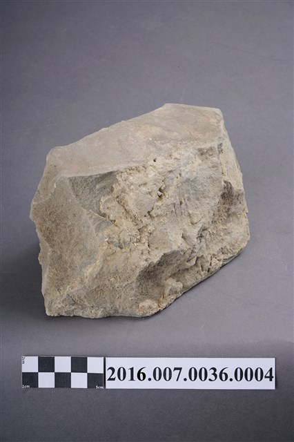 1.本件卵石,六角形,用於善化陳宅第二落正身步口廊虎邊(小邊)廊牆牆基的卵石砌牆組上排,作為花瓣,於104年12月3日拆解取得。卵石平整面朝外,圓錐面朝內,留有疊砌填充時旳部分泥土。