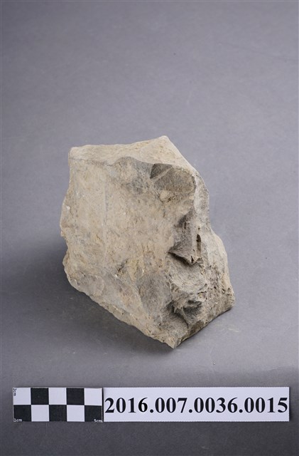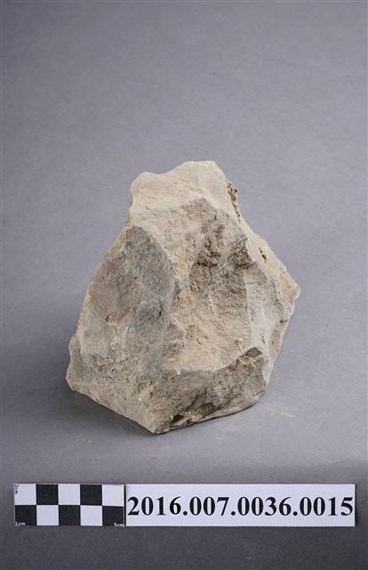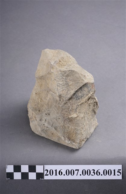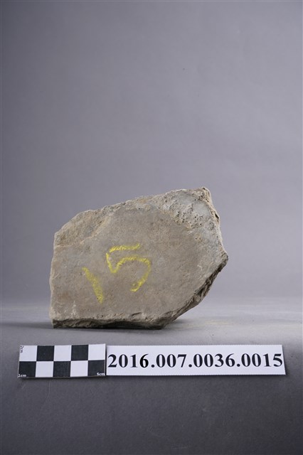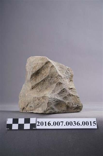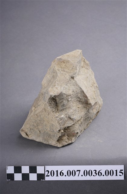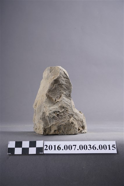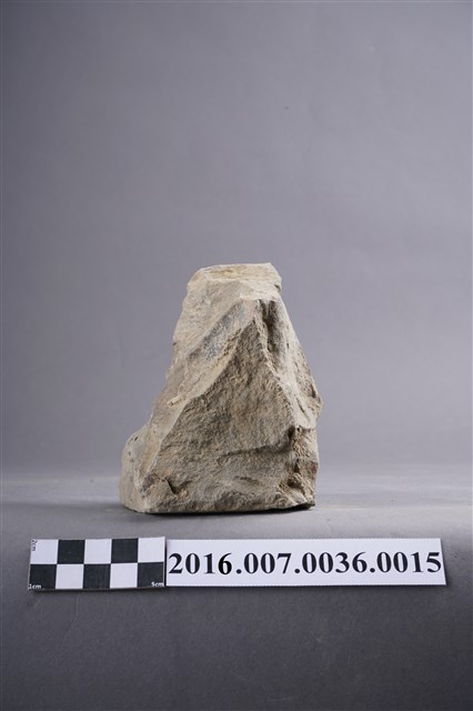 1.本件卵石,六角形,用於善化陳宅第二落正身步口廊虎邊(小邊)廊牆牆基的卵石砌牆組下排,作為花瓣,於104年12月3日拆解取得。卵石平整面朝外,圓錐面朝內,留有疊砌填充時旳部分泥土。