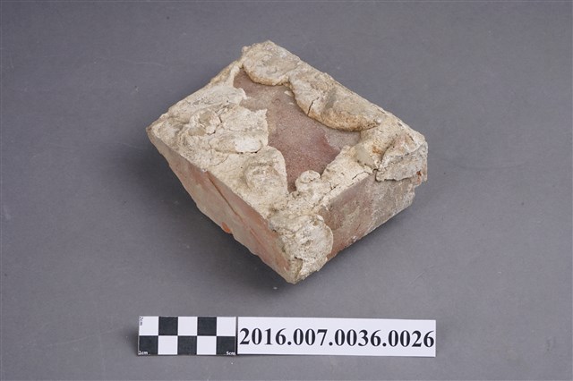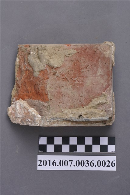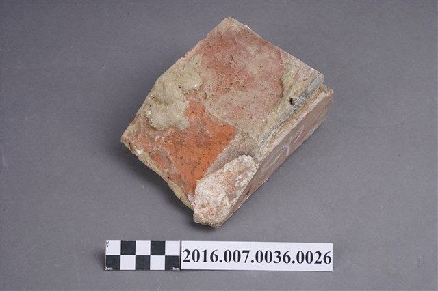 1.本件燕尾磚,厚約4公分,短邊一面斜切,長度約切短一半,用於步口廊卵石砌牆左側邊框裝飾條,朝內五面留有部分的灰泥。燕尾磚,又稱為顏只磚、燕子磚、雁子磚、岸只磚,長側面有1-2道黑色斜紋為其特徵,是入窯磚坯交錯疊放與松木等燃料灰的油脂留在磚面上所形成。因交錯疊放的斜紋形似燕尾而稱之,質地細緻而精美,通常使用於傳統民居明顯部位牆面。