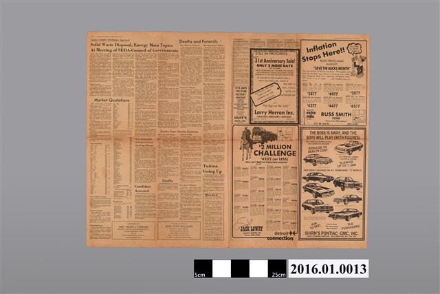 該物件為捐贈者林義雄先生於1977年赴美參加第三十一屆威廉波特少棒賽時,在當地所取得的報紙。這份報紙名為"The Williamsport Sun-Gazette",是美國賓夕法尼亞州(Pennsylvania)威廉波特市自1801年開始發行的當地早報。這份早報為美國現今仍持續發行的古老報紙之一。