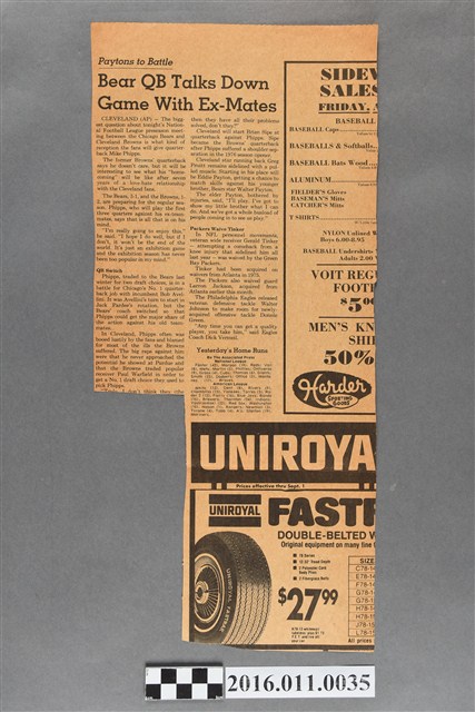 報紙日期無法斷定,報導內容除Don Sutton蒞臨Lamade棒球場一事,尚有第三十一屆威廉波特少棒賽之消息。上方照片為美東隊與美中隊(以俄亥俄州的揚斯敦隊為代表)比賽時,紐約州鹿特丹球隊(美東隊代表)球員Bob Schroll擊出全壘打後回到本壘的開心模樣。