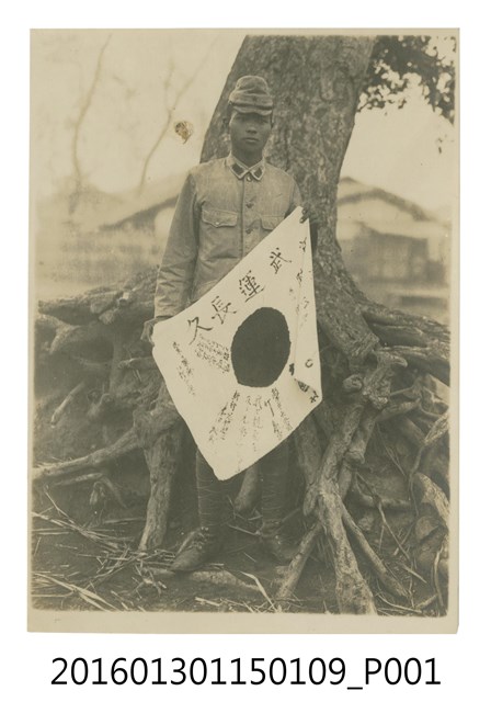 陳文炎手持武運長久旗獨照