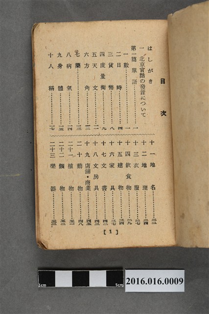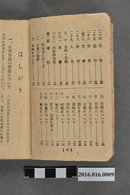 該物件為吳春松先生(出生於1928年)所有,書名為北京會話入門,由騰川書店發行,發行人藤川三郎,發行所位於台南市本町三丁目二二二番地,據捐贈者兒媳表示,應為父親當年閱讀之書籍。